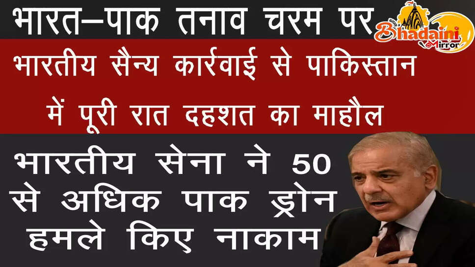 नई दिल्ली, भदैनी मिरर। भारत और पाकिस्तान के बीच तनाव दिन-ब-दिन बढ़ता जा रहा है। ताजा घटनाक्रम में, पाकिस्तान ने भारत की सीमा में 50 से अधिक ड्रोन भेजने की कोशिश की, जिसे भारतीय सेना ने सतर्कता और दृढ़ता से विफल कर दिया। भारतीय सैनिकों ने सभी ड्रोनों को समय रहते नष्ट कर पाकिस्तान को करारा जवाब दिया।
